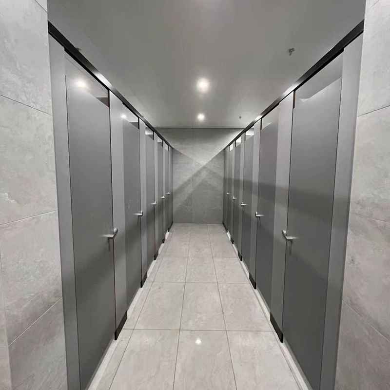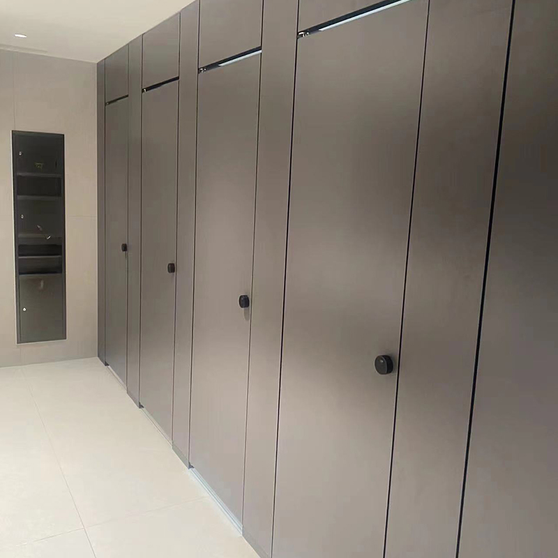 The Compact Laminate Restroom Partition is made from multiple layers of kraft paper impregnated with phenolic resin and topped with a decorative melamine surface layer. These layers are compressed under high temperature and pressure to form a dense, solid, and non-porous panel that is resistant to moisture, impact, and heat. Standard thickness ranges from 12mm to 18mm, with custom dimensions available to suit specific layout requirements.