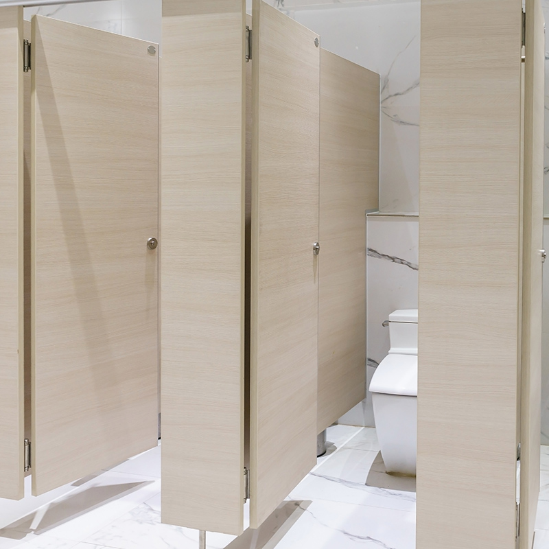 The partition is constructed from compact laminate panels, which consist of multiple layers of kraft paper impregnated with phenolic resin and a decorative melamine surface layer. These layers are bonded together under high temperature and pressure, forming a dense, solid, and non-porous material. Standard panel thicknesses range from 12mm to 18mm, depending on design and application.